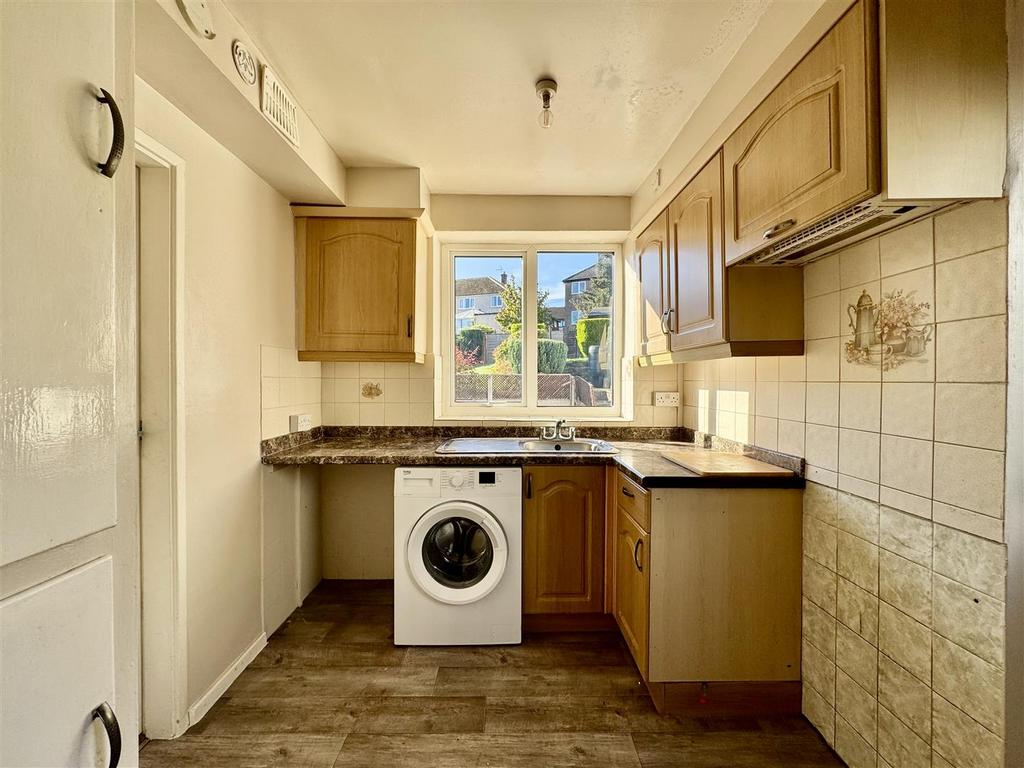 Kitchen - 3.20 max x 2.25 max (10'5" max x 7'4" max) - The kitchen is fitted with a range of timber wall and base units, contrasting work surfaces with tiled splashbacks, a stainless steel sink and drainer with a mixer tap over and plumbing for a washing machine. There is space for an electric oven and an undercounter fridge. A rear window looks out onto the garden, a door leads to the lounge diner and an external door opens to the side of the property.