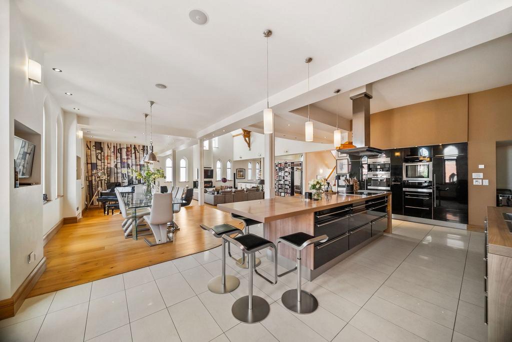 Once a community church hall this impressive space has been converted with care and imagination by the current owners. It is now a home filled with character, space and light. Soaring ceilings, original features and generous proportions give a sense of real scale, while thoughtful updates bring warmth and everyday practicality.