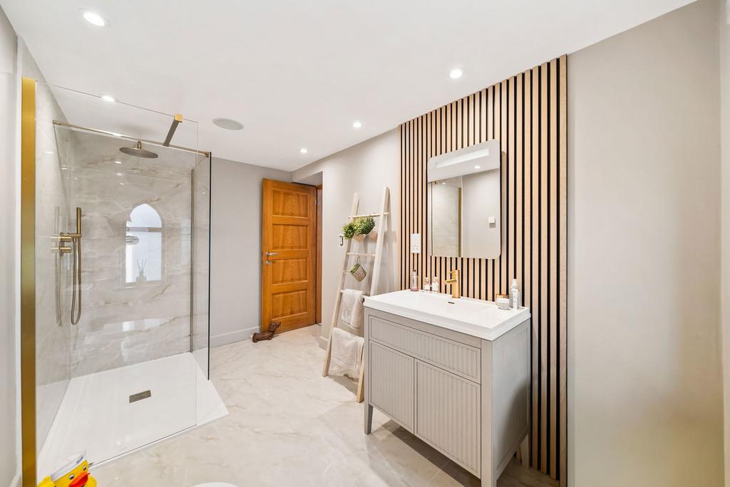 The layout flows very well with large reception areas, a primary suite that feels like a private haven, three further bedrooms and spacious, versatile leisure zones. Every corner has been designed to work for both family life and entertaining. With front and rear gardens, secure gated access, ample parking and an integrated double garage, this is a home that balances heritage with contemporary living, ideally placed for all nearby amenities.