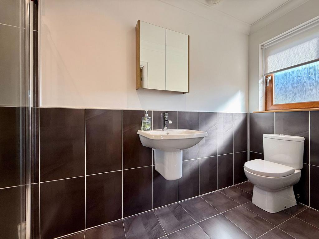 EN-SUITE: (2.06 m x 2.83 m) :- This large en-suite is furnished with a shower cubicle with mains fed shower, heated towel rail, WC, wash hand basin and floor based under sink storage unit, a large Velux makes this a bright and airy bathroom.