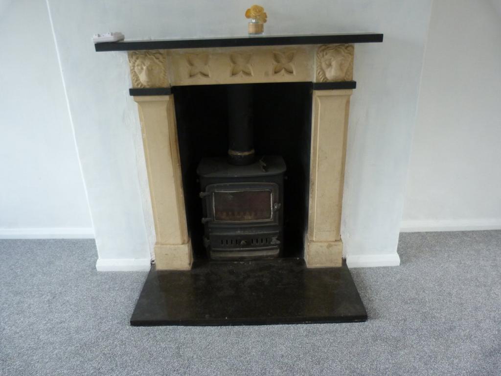 LIVING ROOM: Double aspect good sized room with working woodburner and access to the rear garden via patio doors