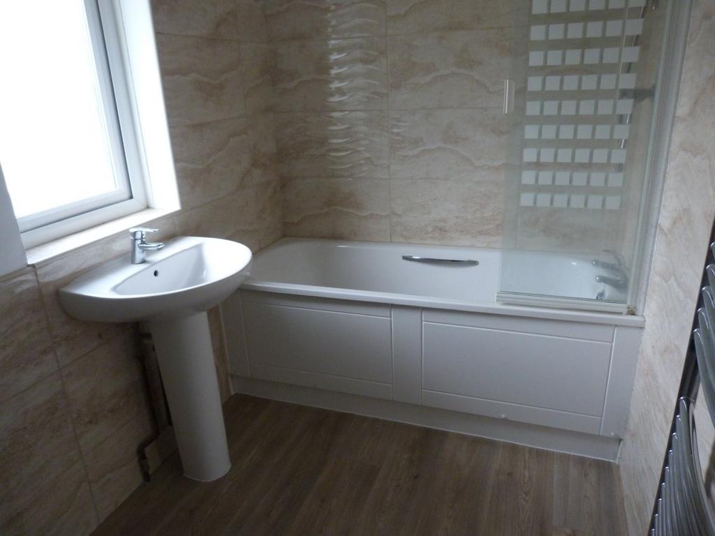 BATHROOM: With a modern white suite comprising of WC, wash hand basin and bath with electric shower over, ceiling extractor fan and window overlooking the rear garden