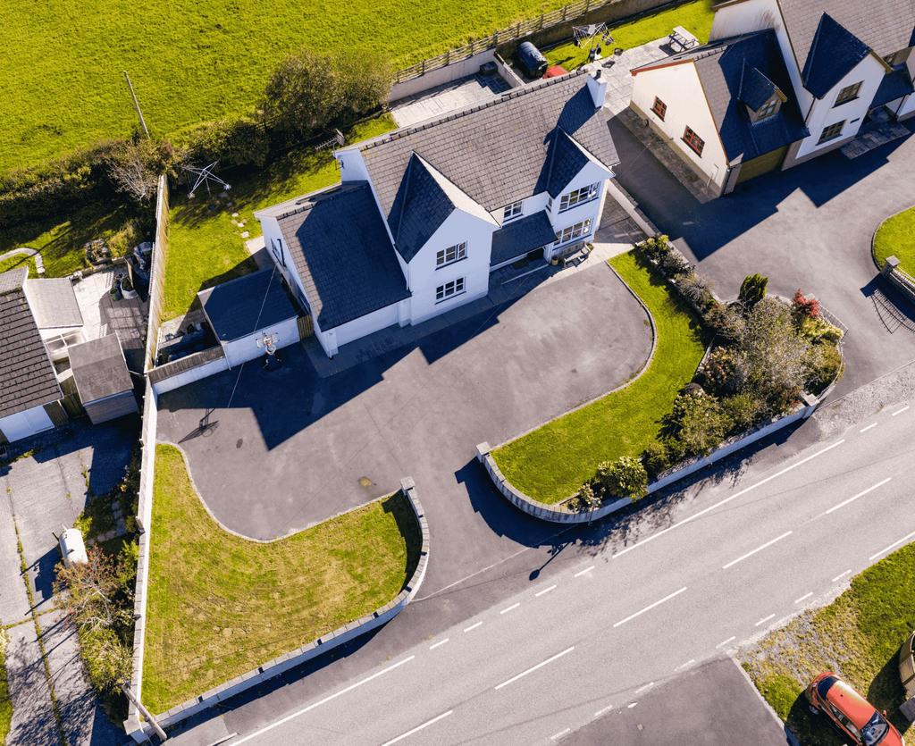 The exterior perfectly complements the spacious interior, offering both practicality at the front and peaceful countryside views at the rear.