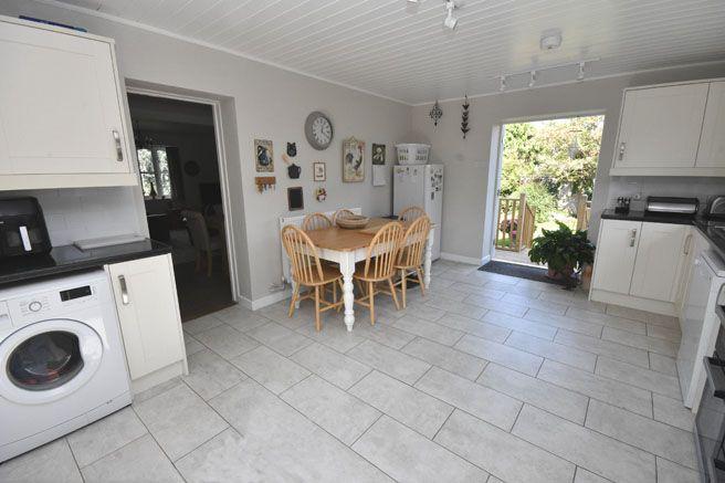 The REAR GARDEN is of a generous size, mainly laid to lawn with curved and shaped flower and shrub beds interspersed with mature trees, trellis screened oil tank, fully enclosed boiler room with Grant oil fired boiler, outside tap. Steps lead up to a decked area, an ideal entertainment space which leads into the fully fitted kitchen.