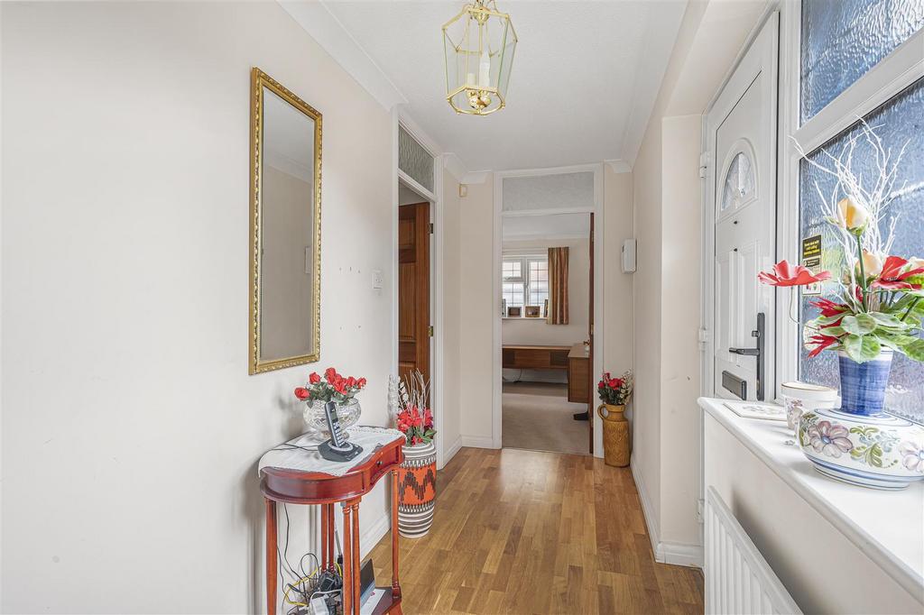 The entrance with a u'PVC double glazed door has two radiators, an airing cupboard, linen cupboard and wood flooring. The cloakroom has been fitted with a close coupled w/c, pedestal wash hand basin, tiled walls and flooring and a window.