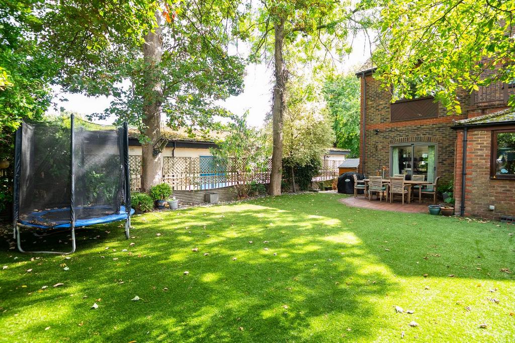 Approached via an area of off-street-parking with space for several vehicles, the ground floor comprises a spacious entrance hall, a large triple-aspect reception room with sliding doors opening out to the patio and garden beyond, a cloakroom, modern kitchen and breakfast room. To the first floor are three double bedrooms with built-in wardrobes, two contemporary bathrooms and two balconies. An expansive double bedroom suite is located on the second floor, complete with adjoining bathroom. and an en-suite bathroom. The well-maintained rear garden offers seclusion, and is accessible from both the reception and kitchen.