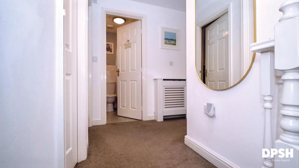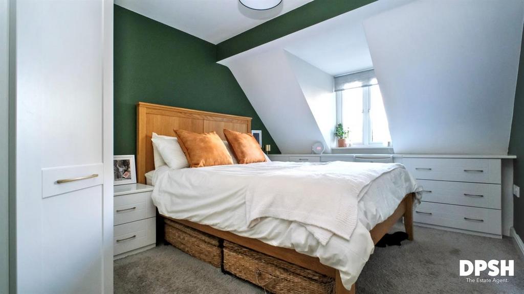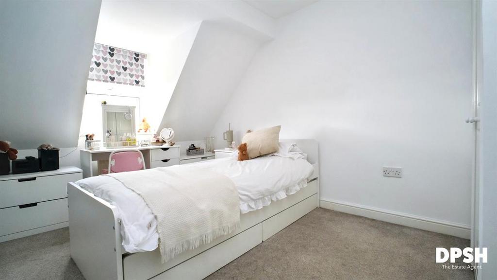 The second-floor landing leads to three well-proportioned bedrooms and the family bathroom. The master bedroom benefits from fitted wardrobes and a private en-suite shower room. Bedroom two is a comfortable double, while bedroom three is an ideal single or office. The modern family bathroom is fitted with a white three-piece suite comprising a panelled bath, wash basin and WC.