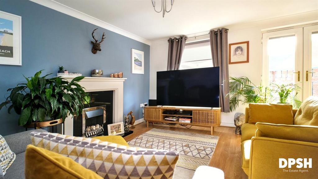 The entrance hallway features a useful built-in storage cupboard and a guest cloakroom with WC. To the rear sits a versatile double bedroom with French doors opening directly onto the garden - ideal for guests, teenagers, or use as a home office. A separate utility room provides practical space for laundry and appliances, while internal access leads to the integral garage, currently utilised as a gym.