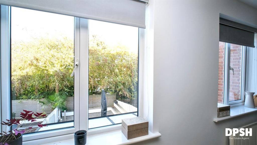 To the front, a paved driveway provides off-street parking for two vehicles and access to the garage. The rear garden has been thoughtfully designed for low maintenance and privacy, featuring a porcelain-tiled patio, artificial lawn, and an elegant aluminium and glass lean-to canopy over the seating area - perfect for year-round outdoor enjoyment. A tree-lined backdrop adds a further sense of tranquillity and seclusion.