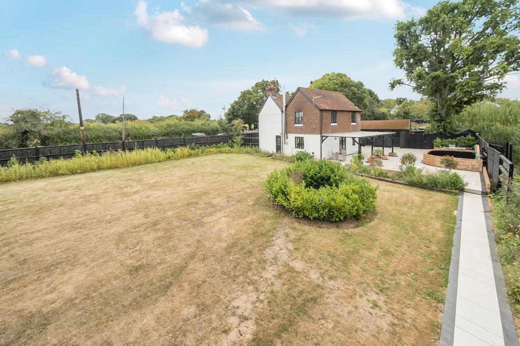 Downstairs, the generous sitting room enjoys French doors opening directly onto the new patio, creating a seamless link to the garden for entertaining. The separate dining room also offers access to the garden, while the contemporary kitchen is fitted with a breakfast bar for casual dining. A ground floor cloakroom completes the accommodation.