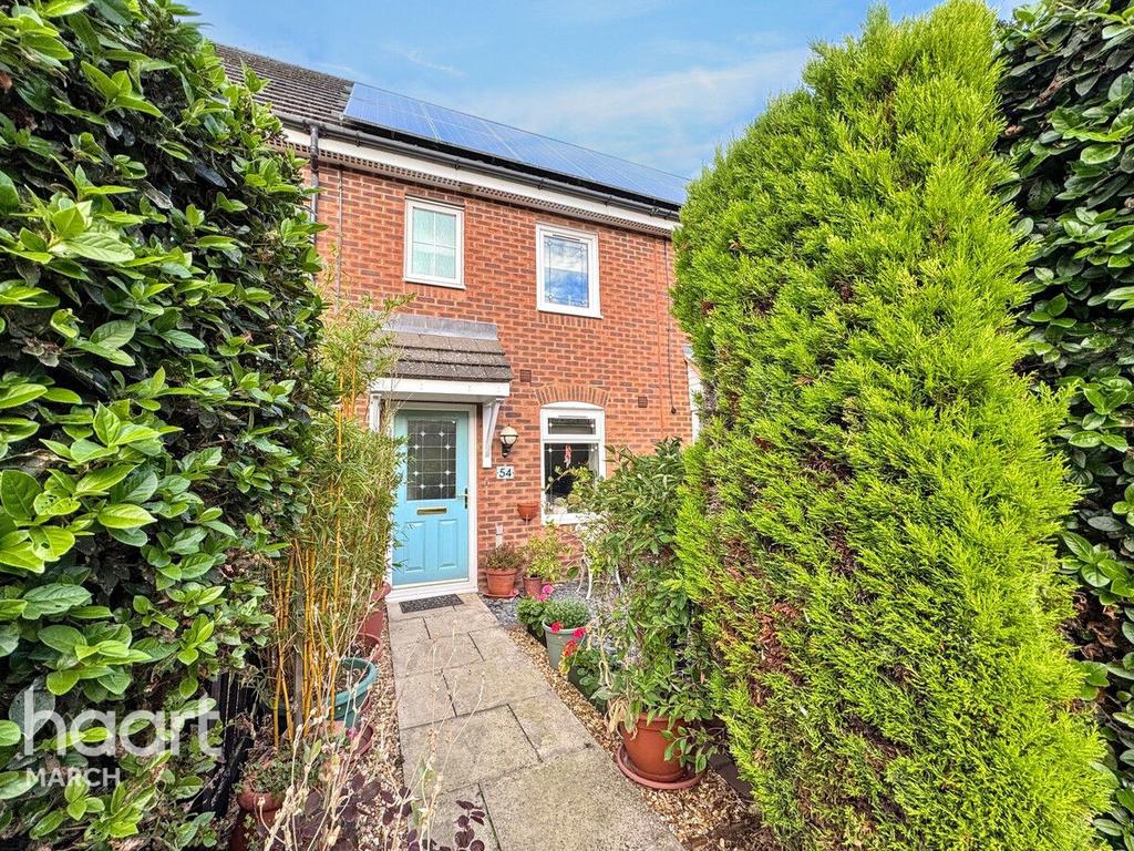 The property enjoys a bright and welcoming layout, with a modern fitted kitchen overlooking the front garden, a generous sitting room with fitted shutters to the patio doors, and the additional benefit of a cloakroom on the ground floor. Upstairs, there are two well-proportioned bedrooms and a stylish shower room.