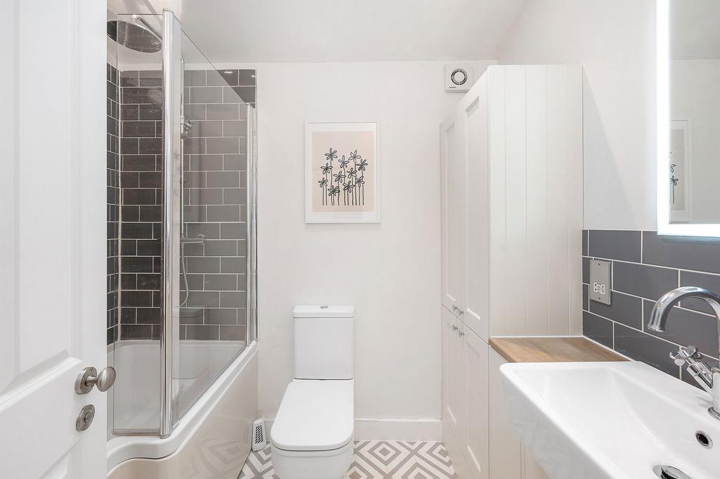 The ground floor features a generous reception with dining space and a cosy log burner, alongside a bright, stylish kitchen with tri-fold doors opening onto a south-facing garden, perfect for summer entertaining. The reception benefits gorgeous wood floor, both the reception and kitchen enjoy underfloor heating adding an extra touch of luxury.