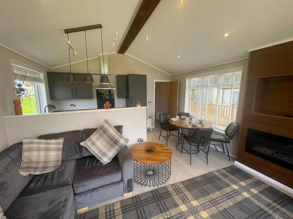 The Quindi boasts a modern, stylish interior, meticulously furnished to a high specification. Enjoy breath-taking countryside views from the elevated position, enhanced by wide windows that flood the lodge with natural light. Wake up to stunning vistas and relax in the evening, enveloped in comfort and elegance.