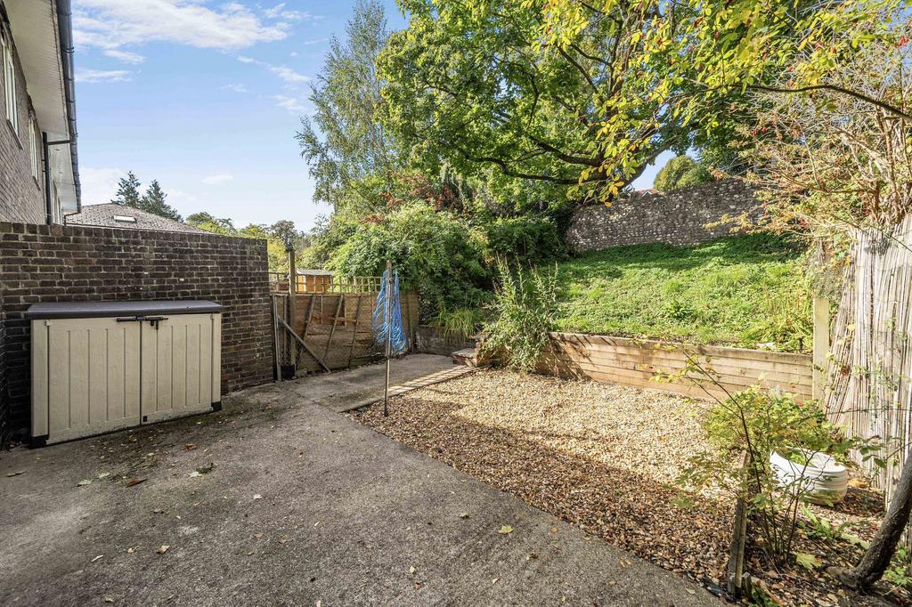 As you step out onto the garden is is currently gravelled with path leading up to the lawn which is slightly elevated. There is a characterful wall at the back which separates the garden from the Worthy Road.