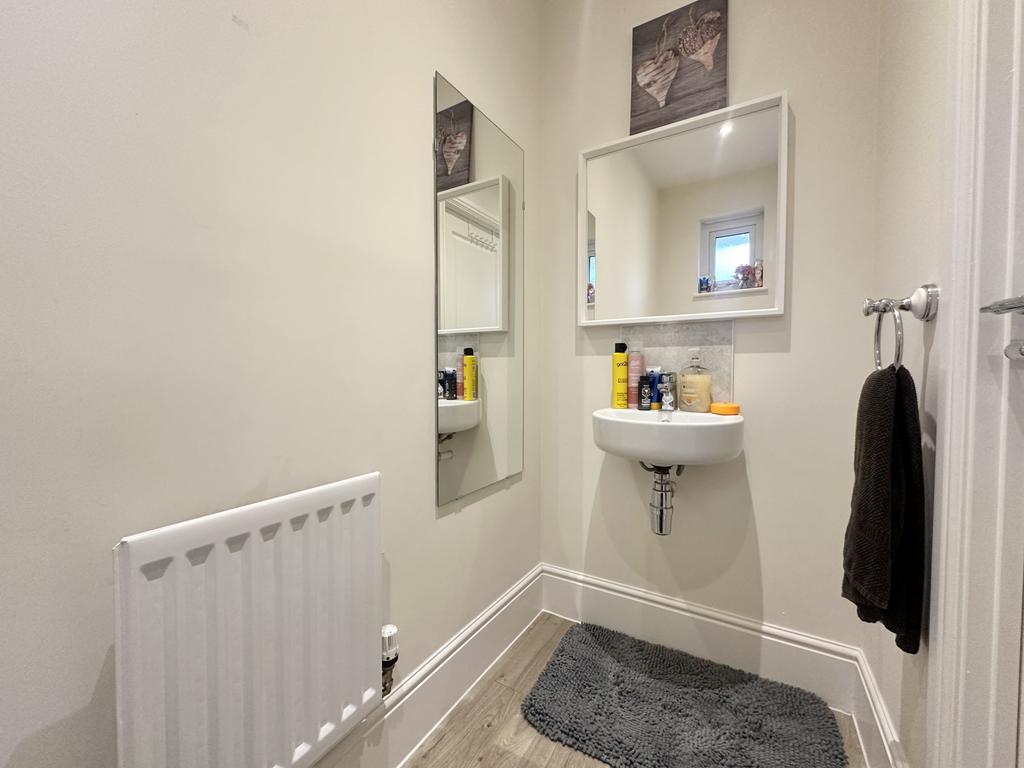 UPVC double glazed window to front aspect, two piece suite comprising; Low flush w.c, wash hand basin and radiator.