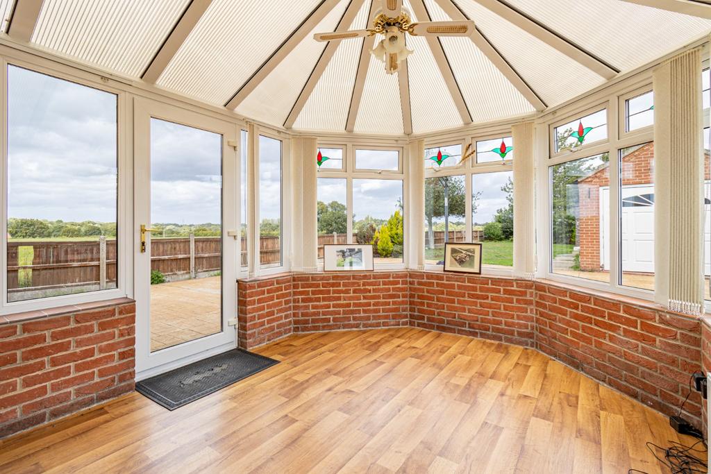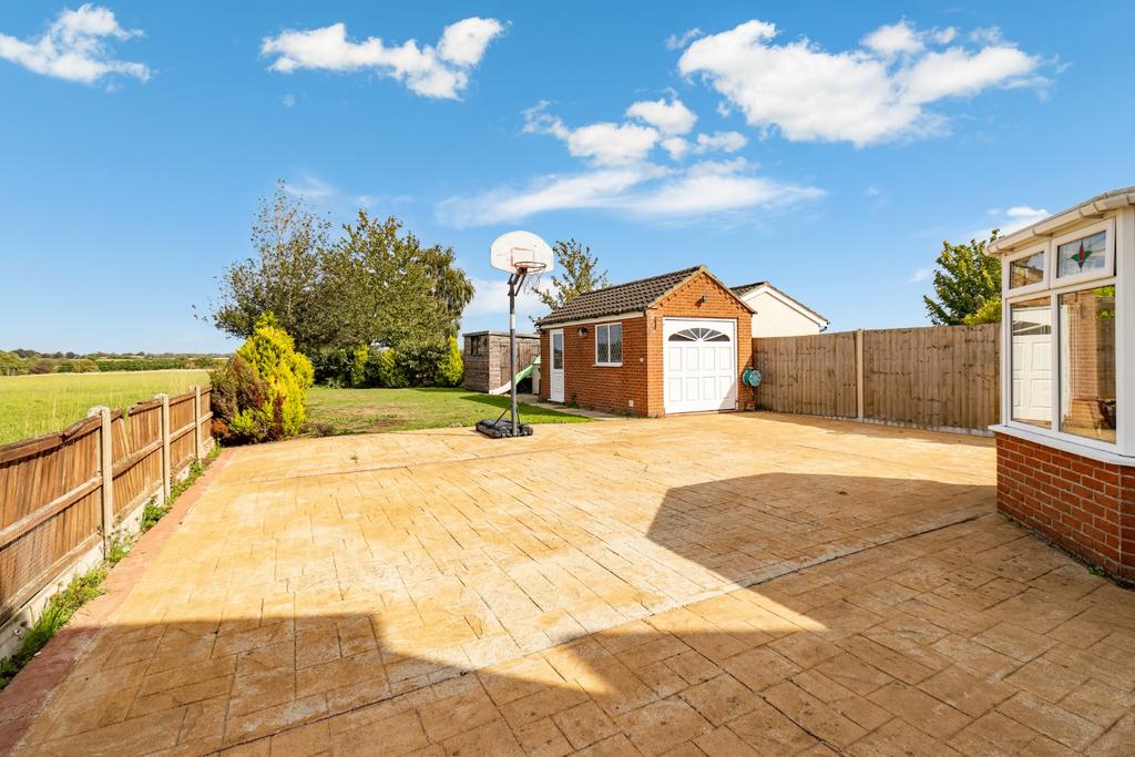 Highview House is set back from the road and accessed via a paved in-and-out driveway, providing generous off-road parking for multiple vehicles. To the rear, the enclosed garden enjoys spectacular open views across fields, offering a tranquil setting for outdoor relaxation. A large patio area is perfect for al fresco dining, while the lawn, garden shed, and brick-built garage with power (not accessible by car) provide further practicality.