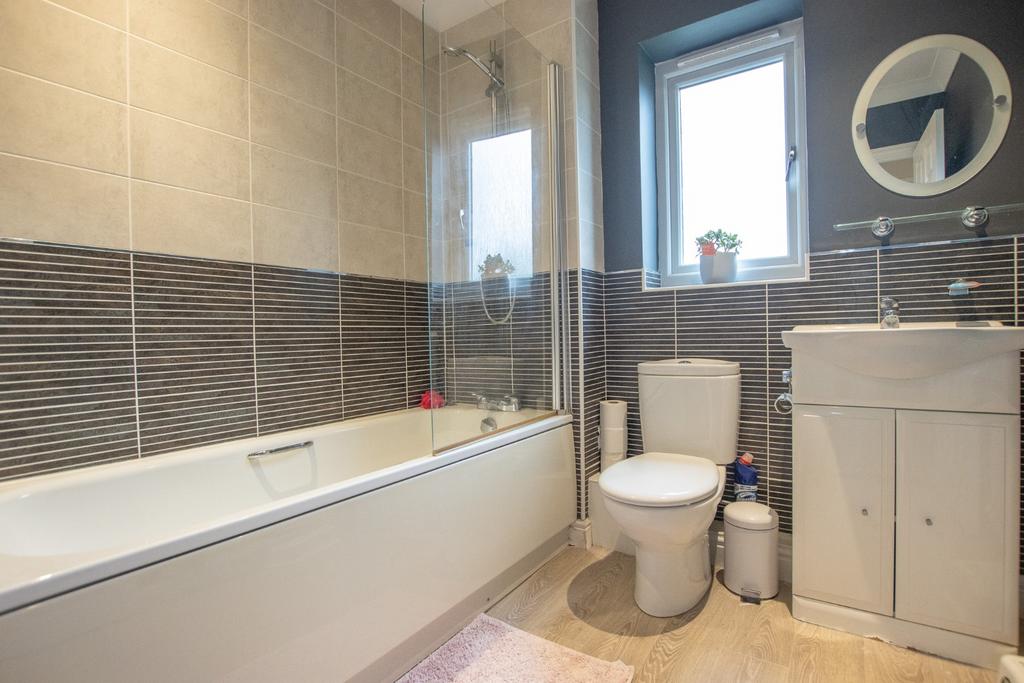 Upstairs there are four bedrooms arranged around the landing, where there is also a built-in cupboard and loft hatch. The master bedroom is a spacious double with view to the front and a neatly appointed ensuite including a 1.2m shower. Bedrooms 2 and 3 are also comfortable double rooms, Wells bedroom four is an ideal child’s bedroom or study. The bedrooms are served by a well appointed family bathroom, which includes a bath with mixer shower over, hand basin with vanity unit and WC.