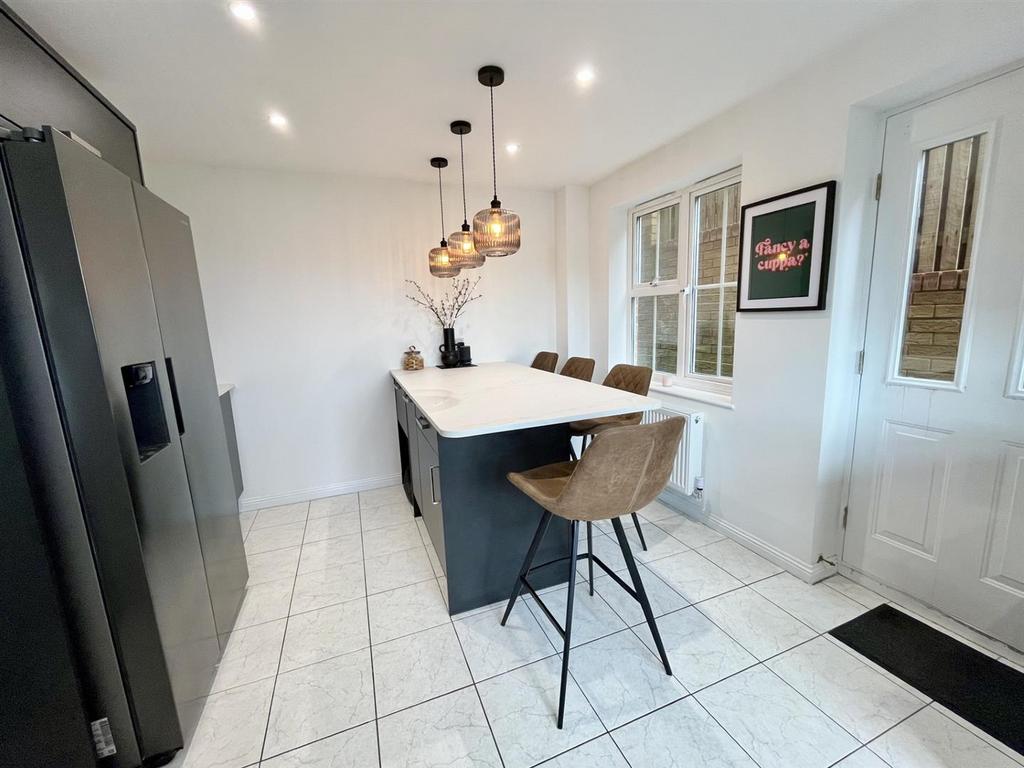 The property is accessed via part glazed entrance door leading into entrance porch. The kitchen/breakfast room has been refitted with a range of matte wall and base units incorporating a selection of cupboards and drawers, there is a built in oven and gas hob and space for an American style fridge/freezer and dishwasher. There is a fitted island with breakfast bar space and a window overlooks the front and door leading to the side. A seperate cloakroom is on this level fitted with WC. A door gives access to the utility/family room with appliance space.