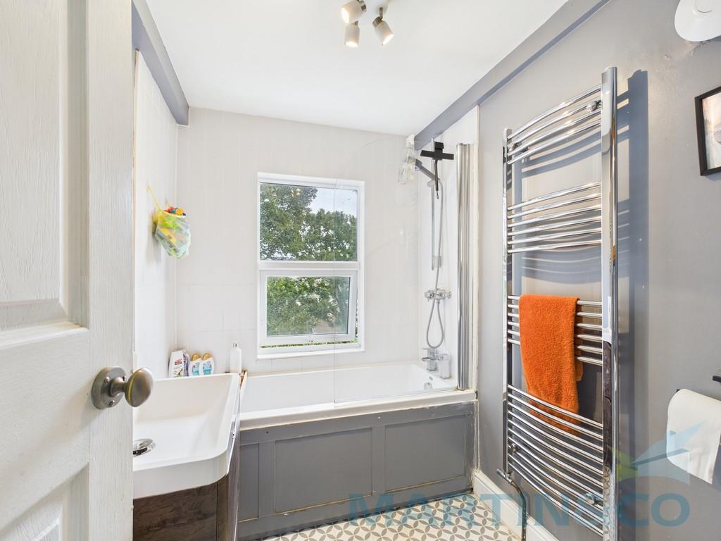 Bathroom - 7'5 x 5'5 Fitted suite with panelled bath with plumbed in shower over, wash basin, electric towel rail and WC.
