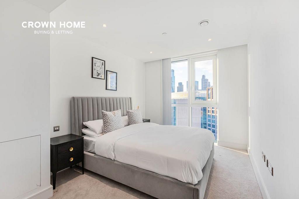 The living area is a bright, inviting space that leaves a lasting impression. Its open-plan design ensures a seamless flow throughout the apartment, enhanced by underfloor heating and sleek contemporary finishes. The L-shaped kitchen is thoughtfully equipped with fully integrated appliances, including a modern wine cooler, making it both stylish and functional. From the living area, step onto the balcony to enjoy uninterrupted city views, including a stunning perspective of The Shard.