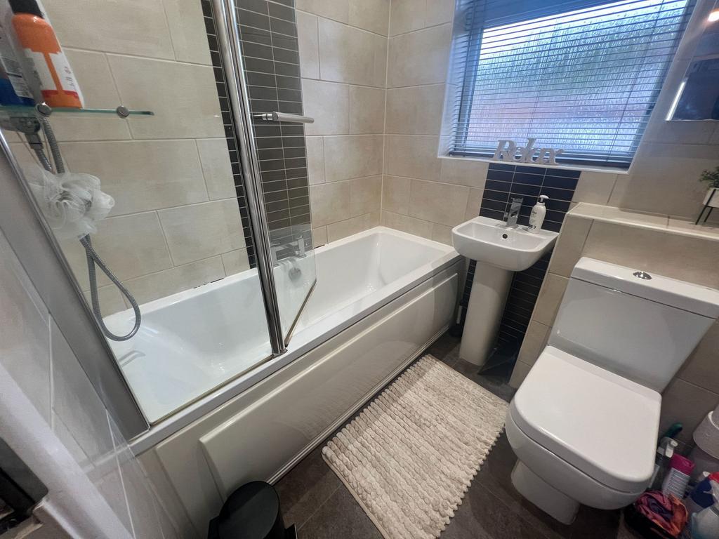 The first-floor landing provides access to all three bedrooms, and there is a family bathroom comprising a panel bath having a shower screen and a shower over, a wash hand basin, and a low-level flush WC.