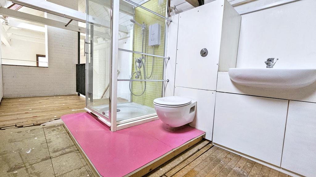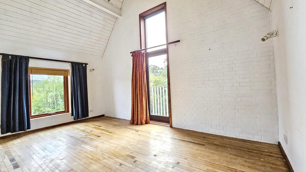 There is additional shower room and feature mezzanine gallery. Scope to develop further bedrooms on second floor.