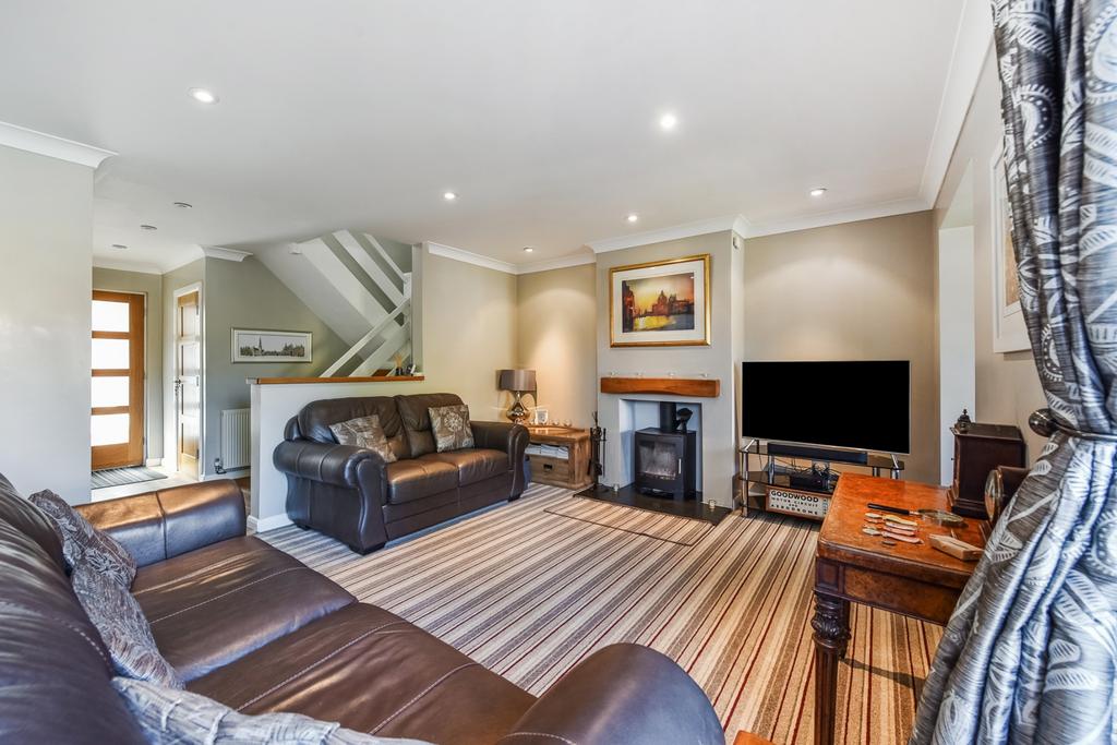 A spacious and bright room featuring a working log burner, timber mantle and sliding door to the patio and rear garden patio. There's also a tucked-away space, ideal for a dining area or home office.