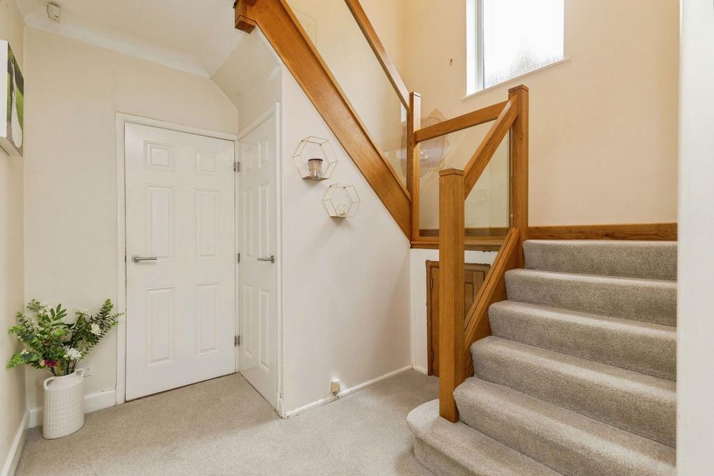 - Welcoming hallway — striking oak-and-glass staircase with feature window, two large built-in cupboards, and a convenient ground-floor WC.