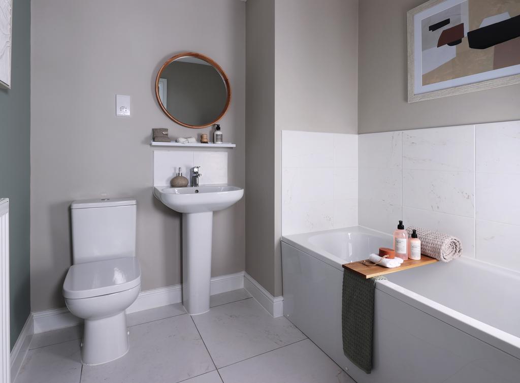 Step up a level and you’ll find a double bedroom and single bedroom, which share a generous family bathroom. Plus there’s a handy space tucked away quietly at the end of the landing, ideal for a work-from-home base or homework desk for the kids.