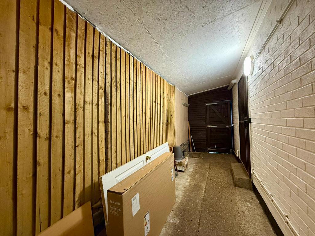 With driveway parking, a guest cloakroom, a full wet room upstairs, and four comfortable bedrooms, this home is designed for modern family living. The low-maintenance garden, framed by mature planting, provides a private space to relax, while the covered side storage leads to an extra garden room and provide extra space that could potentially be used as home office, gym or additional storage.