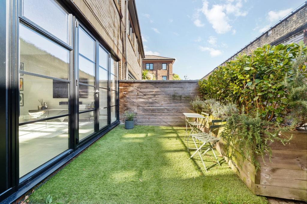Comprises secure gates, patio garden, private front door, open-plan kitchen and living room, two double bedrooms - and a family bathroom. Long leasehold with share of freehold. No chain.
