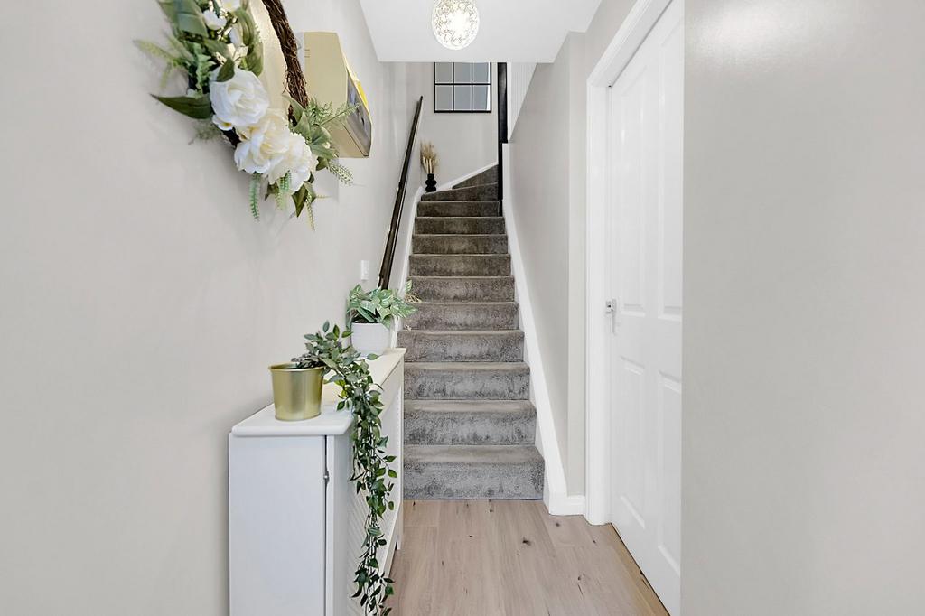 Entrance Hallway - Having a UPVC composite front door, radiator, stairs to first floor, ceiling light point and door leading to: