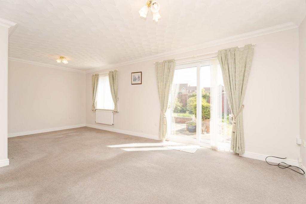 Lounge - A bright and spacious room offering generous space for furniture for a range of uses, with a large rear aspect double glazed window providing ample natural light, carpeted flooring, and sliding patio doors providing access to the rear.