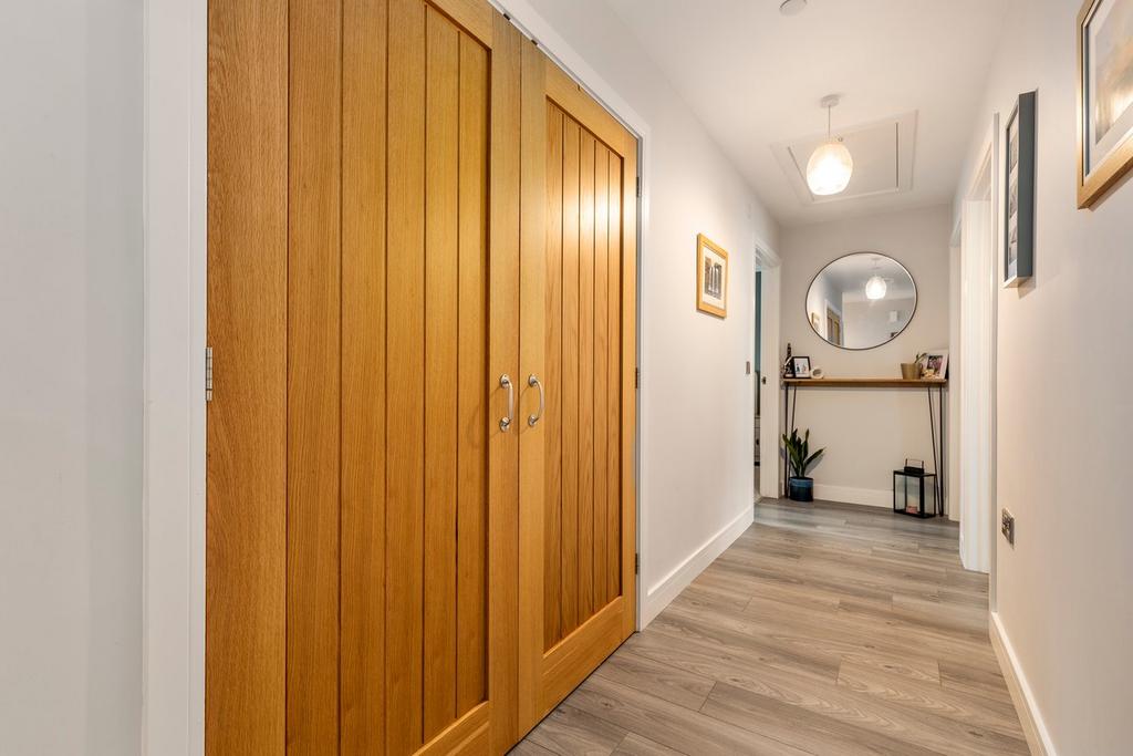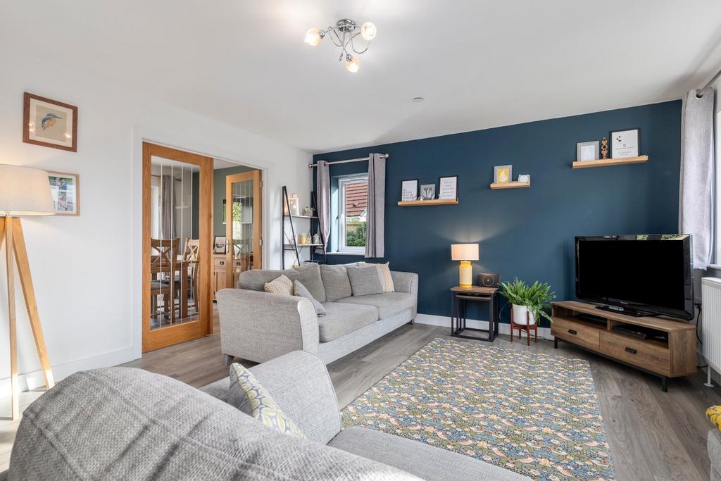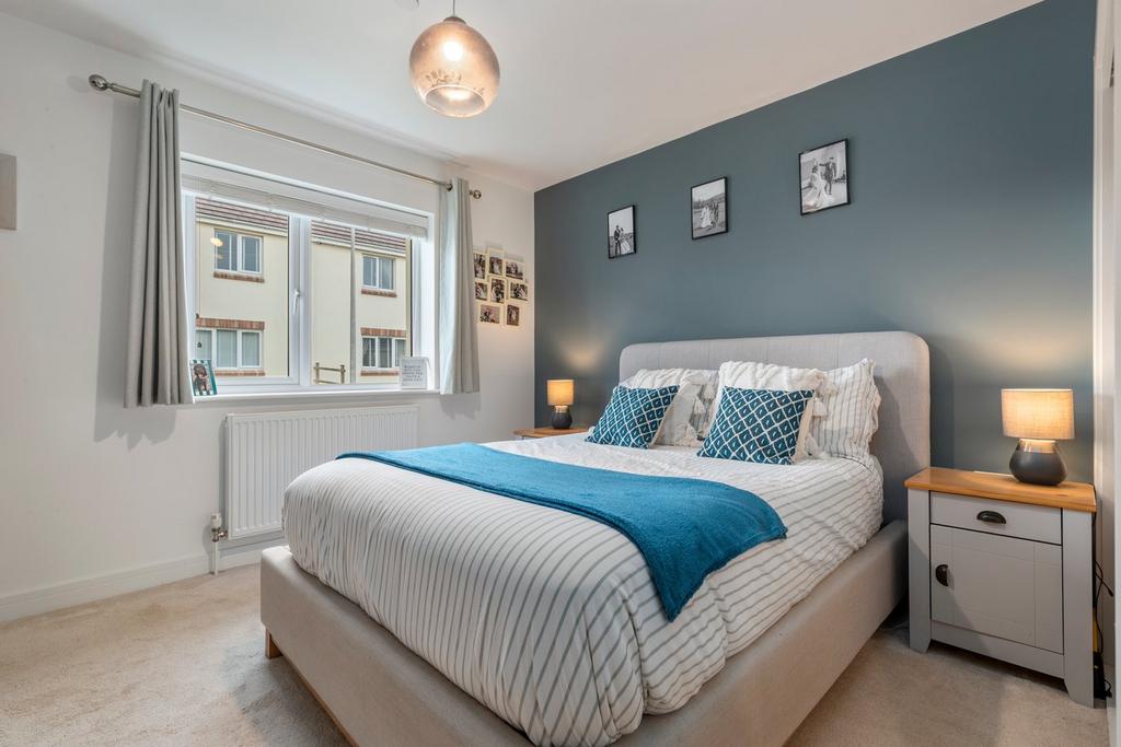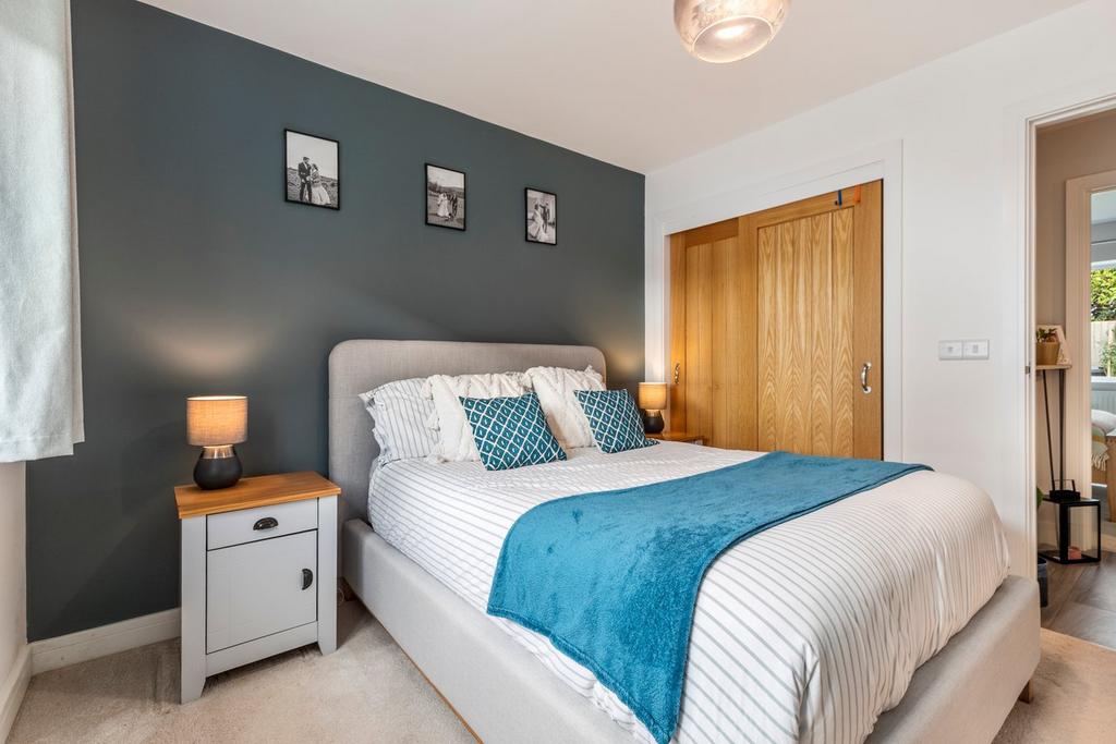 The sleeping accommodation is thoughtfully arranged. The principal bedroom enjoys a stylish en-suite, adding a touch of luxury and privacy. Two further bedrooms provide flexibility for family, guests, or a dedicated home office, all served by the home’s well-planned, high-quality finish.