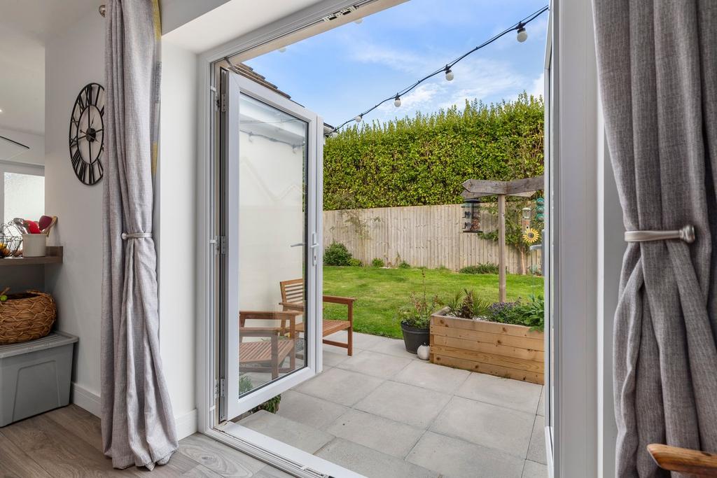 - Spacious L‑shaped kitchen/diner with glass oak double‑door flow