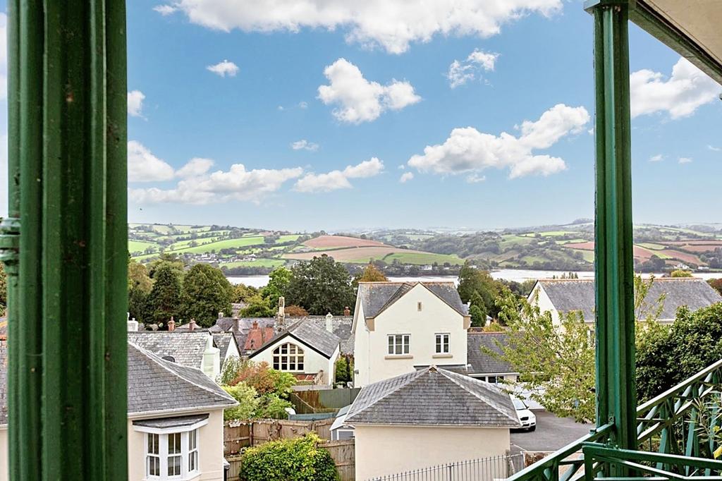LOUNGE AREA with attractive original double French patio doors giving access to a private enclosed balcony and enjoying views into the river Teign estuary and open farmland beyond. DINING AREA with multi-paned window to side aspect with deep display sill. Picture rail, modern electric independently controlled radiator. Space for table and chairs. Feature archway through to the kitchen.
