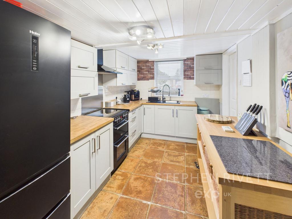 Window to the front aspect and radiator. There is a range of wall and base mounted units with worktop over, inset sink, tiled splash backs and extractor hood. There is also space for stand alone cooker/hob and fridge freezer. Separate pantry and quarry tiled floor.