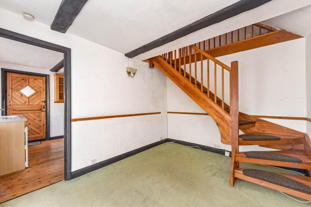 Off the kitchen, there is also a dining room which includes a staircase to the first floor where two double bedrooms are located. Whilst the layout is a little unconventional, it provides potential for reconfiguration or improvement to suit modern living, subject to obtaining the necessary consents.