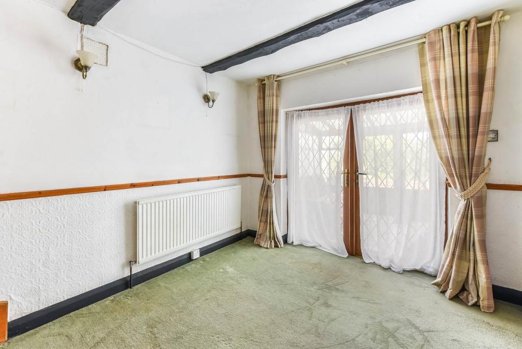 This two-bedroom detached chalet-style bungalow is offered in need of modernisation throughout, providing an opportunity for buyers to refurbish and adapt the property to their own requirements.