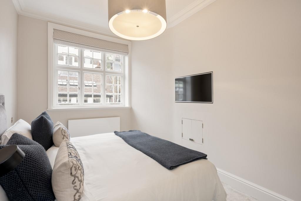 Located on the second floor, the apartment has been refurbished to an exceptional standard, offering a contemporary layout while honouring the refined architectural heritage of the area. The elegant Queen Anne revival style, introduced by the Grosvenor family in the late 19th century, remains a defining feature of this historic street, originally developed in the 1700s.