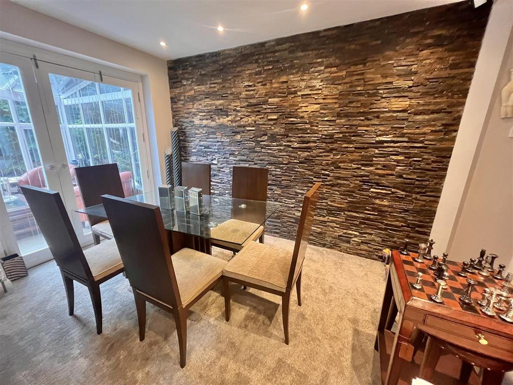 Occupying an impressive corner plot in one of Wilmslow’s most desirable residential spots, this beautifully appointed, detached home offers over 2,100 sq ft of flexible living space just a short stroll from Wilmslow town centre, Wilmslow High School and the train station. Located at the entrance of a quiet cul-de-sac, benefiting from a corner position, this five/six bedroom home offers both convenience and a prestigious location. Upon entering, a welcoming hallway sets the tone and opens into the superb open plan living / dining room which provides an excellent entertaining space and enjoys a dual sets of French doors leading to one of the two conservatories offering flexible accommodation and multiple reception areas with further access and views to the garden. The kitchen is both practical and stylish, featuring a breakfast bar, integrated appliances, and access to a separate utility room and large walk-in pantry cupboard. The ground floor also includes a versatile double bedroom with its own en-suite shower room — ideal as a guest suite, home office, or additional reception room. To the first floor the property provides five further bedrooms, four comfortable doubles and one single. The main bedroom benefits from a private en-suite, while two additional shower rooms serve the remaining bedrooms. Two of the double rooms feature fitted wardrobes, ensuring ample storage throughout. Externally, the home sits behind a generous driveway providing parking for several vehicles. The gardens wraps around the property, offering mature planting, a paved patio, and excellent privacy — perfect for outdoor dining and entertaining.