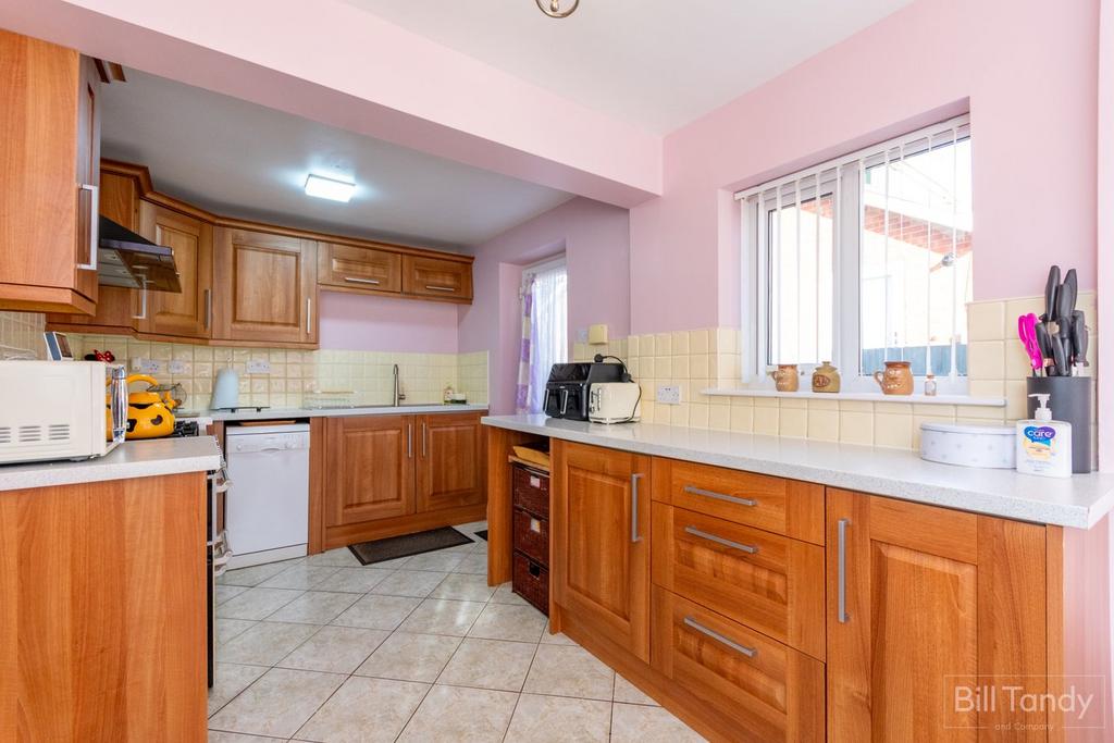 4m x 2.3m (13' 1" x 7' 7") useful room with upvc double glazed window to front and upvc double glazed door to rear, modern wood effect flooring, traditional wood effect base unit with roll top work surface with matching upstand and inset sink and drainer unit, space and plumbing for washing machine and other white goods, space and plumbing for American style fridge freezer, radiator, ceiling light point.