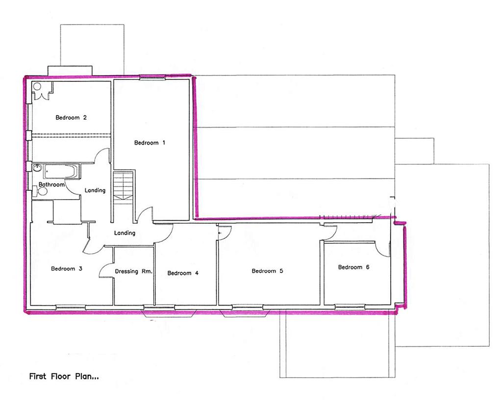 Landing, six bedrooms, plus dressing room/seventh bedroom and bathroom with W.C.