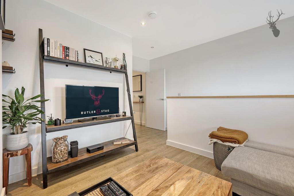 The principal bedroom is generously sized and benefits from a stylish en-suite bathroom, while the second double bedroom is equally well-proportioned and served by a sleek family bathroom. Throughout, the finish is contemporary and considered, with high-quality flooring, fixtures and fittings.