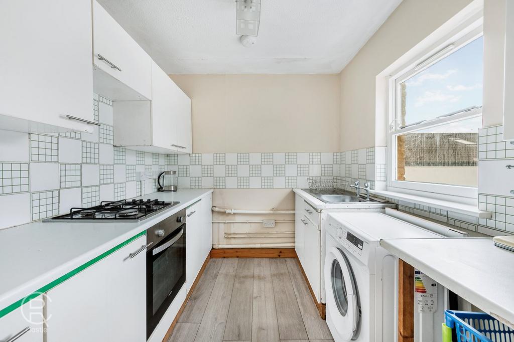 The accommodation comprises a generous 16’5 x 14’6 reception room filled with natural light, a separate fitted kitchen, two bedrooms, and a family bathroom. The layout flows comfortably, with well-defined spaces for living, dining, and relaxing. Both bedrooms enjoy peaceful rear-facing aspects, while the large windows throughout the flat create a bright and airy feel. Externally, residents benefit from allocated parking to the rear of the building and a secure communal entrance. The block itself enjoys an attractive brick façade and a well-kept courtyard, contributing to a friendly and convenient living environment.