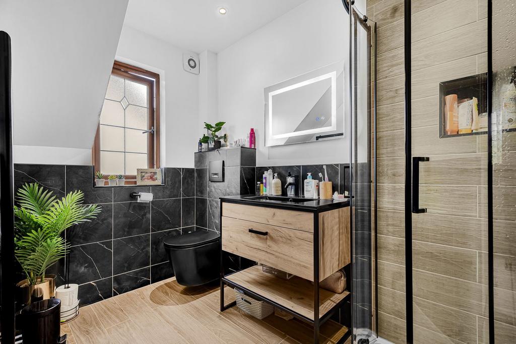 Bedroom one is a luxurious principal suite with a walk-in wardrobe and a stylish en suite bathroom. Bedroom two also benefits from an en suite shower room and built-in wardrobes, perfect for guests or older children. The home also offers three additional good-sized bedrooms, all providing ample space for family, guests, or study areas.