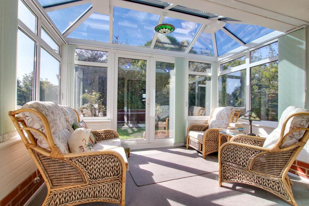 This spacious chalet bungalow offers a generous layout, providing accommodation for four bedrooms in total. Extending to approximately 2,200 square feet, the property presents significant potential for modernisation and refurbishment. The home is entered via an enclosed porch, leading to a welcoming reception hall with stairs to the first floor. From the hall, access is provided to the principal reception areas, including a dining room, a large living room, and a conservatory. The property also benefits from a separate kitchen with an adjoining utility room. The ground floor is completed by a bright and airy dual aspect double bedroom with a south-facing aspect, a second double bedroom, and a modern shower room. Upstairs, a central landing leads to two further double bedrooms, a family shower room and an ensuite to the principal bedroom. The property offers ample storage throughout.