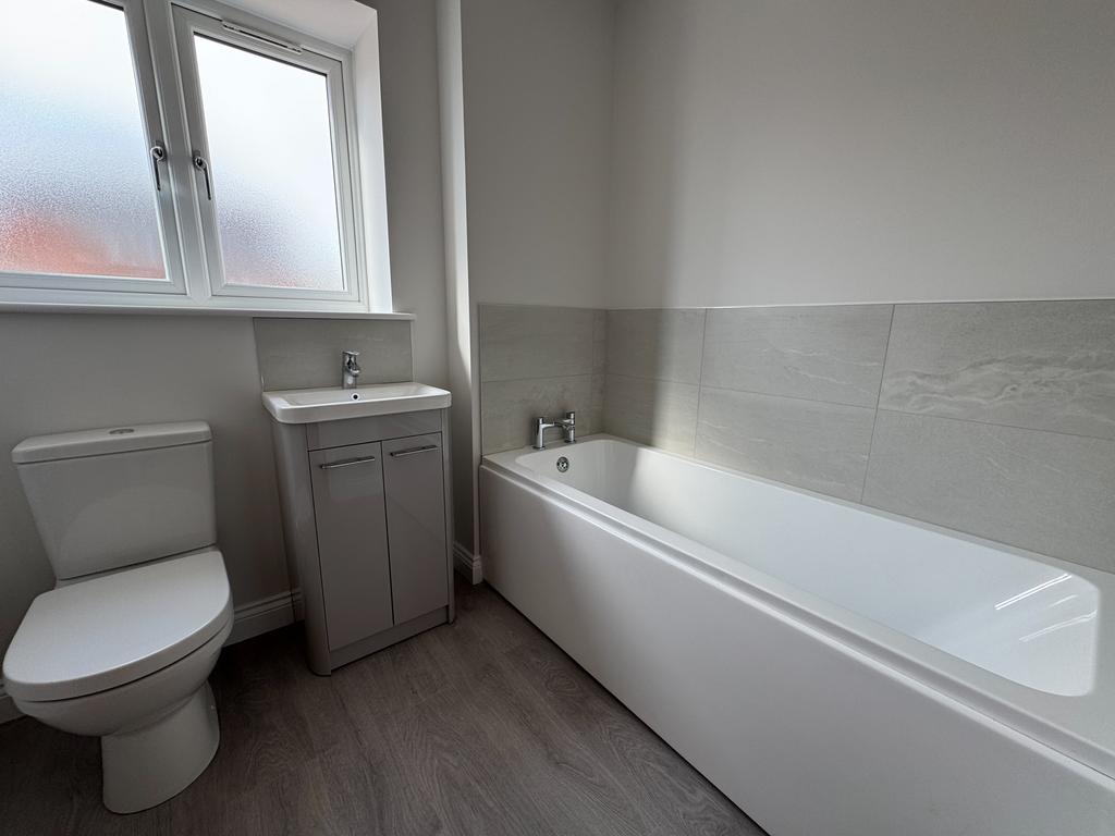 having plumbing for washing machine, low level wc, vanity wash basin and fitted extractor vent.