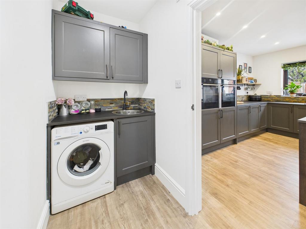 Utility - Base and wall units, laminate worksurfaces, single sink unit with mixer tap over, power points, space for washing machine and tumble dryer, partly tiled walls, laminate flooring.