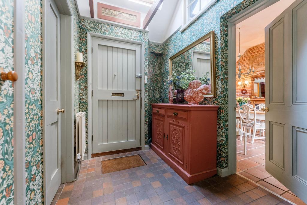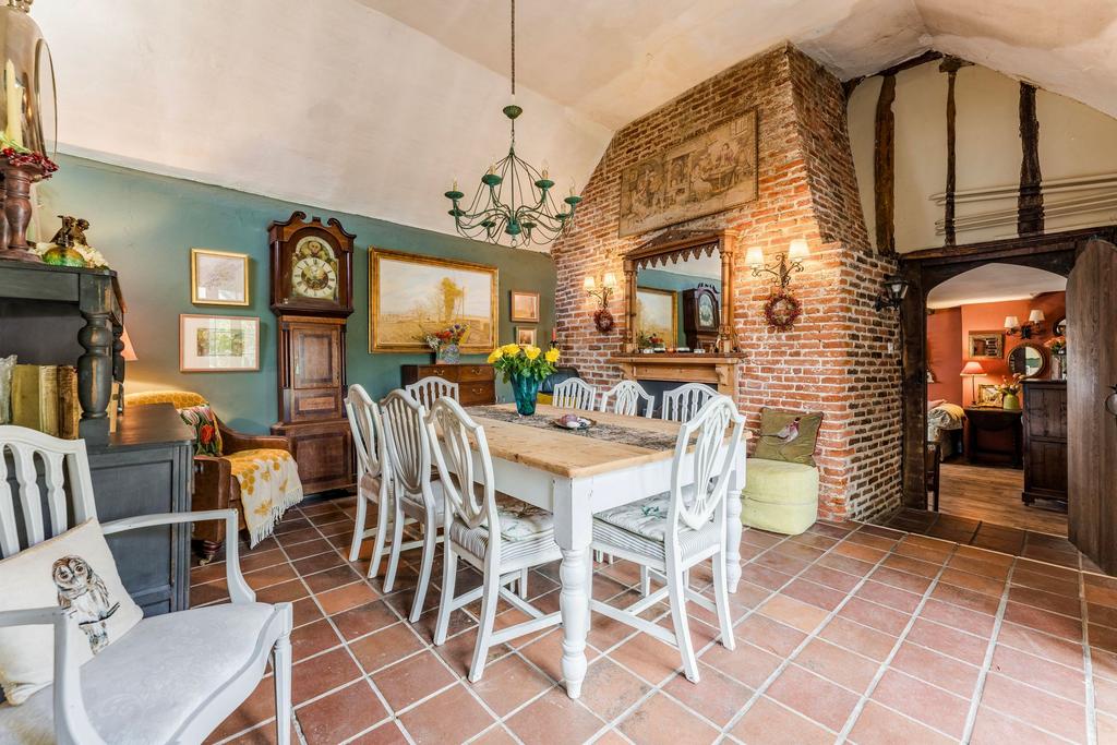 Guide price £400,000 - £425,000. Steeped in history and rich with timeless character, this captivating Grade II listed cottage in the heart of Rickinghall offers a rare blend of heritage and modern comfort. Dating back in part to the 16th century, the home welcomes you with a warm and inviting atmosphere, from its exposed beams and striking inglenook fireplace to the impressive vaulted dining room and beautifully appointed farmhouse kitchen. Versatile living spaces include a ground-floor bedroom and shower room, ideal for guests or a home office, while upstairs offers two further bedrooms and a stylish family bathroom with a roll-top bath. Outside, the mature rear garden provides a private haven for relaxation and entertaining, complete with terrace, lawn, and double garage with conversion potential (stpp). A true Suffolk treasure, this cottage embodies the best of village living, with character and endless charm.
